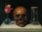 Au centre de la composition, un crâne : Il est tout ce qui reste de nous. Il est à la fois le point de départ et l'aboutissement. Il nous rappelle une mort inévitable et la perte d'humanité qu'elle cause. Il ne s'agit plus d'une être humain, le crâne n'est plus d'un objet. Bien évidemment, le visage a disparu, il ne reste donc rien de ce qui ne nous permettait de deviner son identité. Le crâne n'est personne et tout le monde à la fois (y compris nous-même, un jour). La mort prive d'Homme de son identité.